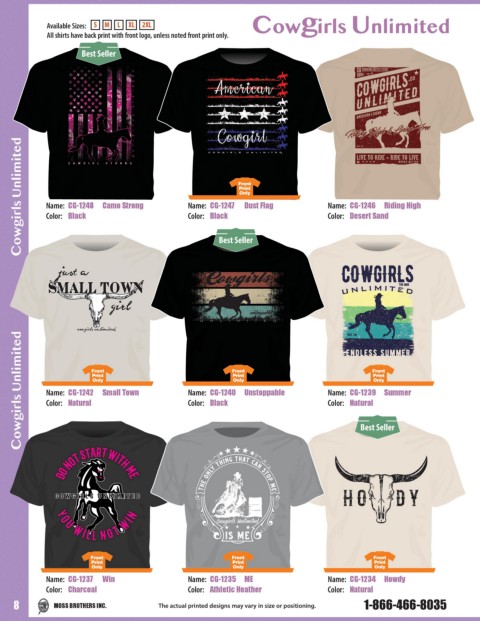 Available Sizes: S M L XL 2XL Cowgirls Unlimited