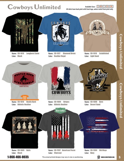 Cowboys Unlimited All shirts have back print with front logo, unless noted front print only.