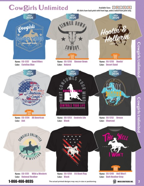 Name: CG-1254 All American Name: CG-1253 Controls Life Name: CG-1252 Breeze Cowgirls Unlimited